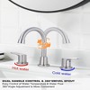 Our faucet features 2-handles and a spout, accommodating various three-hole sink setups. Crafted from high-quality materials and manufactured with strict processes, our product ensures durability and reliability. With a 360° rotating faucet, it easily reaches every corner of the sink. The dual-handle design allows for easy adjustment of water temperature and flow to meet different user preferences. All necessary parts and instructions are included for easy installation. Plus, our product comes with a free pop-up drain, so you don't need to make any extra purchases.