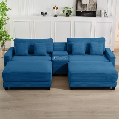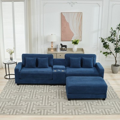 HYLEORY Corduroy Ottoman for Sectional Sofa, Navy