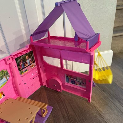 Barbie Dream Camper Playset with Roof Tent, BBQ Grill with Color-Change Feature and 60+ Accessories