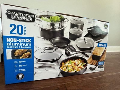 [This review was collected as part of a promotion.] Granite Stone 20 piece Complete Cookware + Bakeware Set is worth every penny. This non-stick set was used over the Thanksgiving holiday and I was amazed at how good and easy it was to use these pans. They need very little oil or butter, cooks to perfection, and clean up is a breeze. They are also dishwasher safe. I am in love with this set.