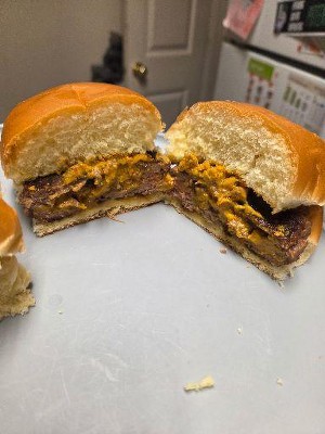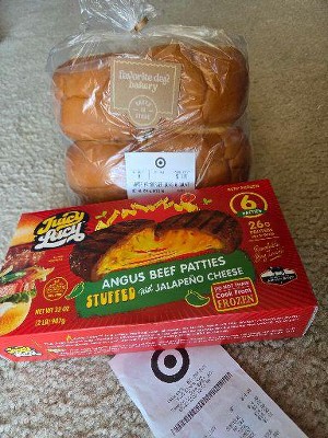 I gave these Juicy Lucy stuffed burgers a try, and overall, I was pretty impressed. The resealable bag is a nice touch for keeping everything fresh and easy to put away. Cooking tip: I definitely recommend covering them while cooking, this helps with even cooking and keeps the cheese from making too much of a mess. That said, the cheese does tend to stick to the pan a bit, so using a non-stick pan is a good idea. The cheese inside is flavorful with a nice level of spice, though the texture was slightly gritty, not a dealbreaker, just something to note. The burger itself was a little tough, but honestly, that’s kind of expected with frozen patties. One burger was enough to fill me up, so they’re pretty satisfying portion-wise. For reference, the burgers were $14.99 before tax, and I paired them with Target buns that were $3.99. Final Thoughts: Solid frozen burger option if you're craving something cheesy with a kick. Not perfect, but worth trying! Especially if you don’t mind a bit of cleanup.