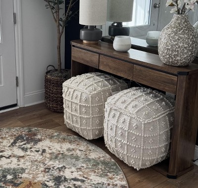 We really love the functionality of this table. The drawers are perfect and our ottomans fit underneath nicely. It was easy to build and looks really nice.