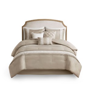Gracie Mills 7-Piece Farmhouse Lace Trim Comforter Set with Throw Pillows