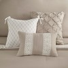 - Coordinating lace, pintuck, embroidery, and tufting details on throw pillows