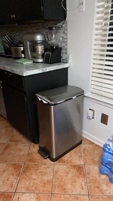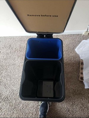 [This review was collected as part of a promotion.] This is perfect for the organized person who doesn't want their recycled just placed in an open bin. It nicely separates both recycled and regular trash in two separate baskets under one can. With a step stool function that glides easily up. So here is what I found to be troublesome. The 2 baskets do not fit a 13 gallon bag so when you take the bag out you have wasted half of the bag. Why not get smaller bags, you may ask? Well we produce ALOT of trash for a family of 6. Also the lid does go down on it's own after using the step stool, but forces of habits we end up pushing it down ourselves which kind of defeats the purpose. It does clean up our trash area but in the end the regular plastic ones work just as good for a family like our, but would be GREAT for the recycling millenial family.