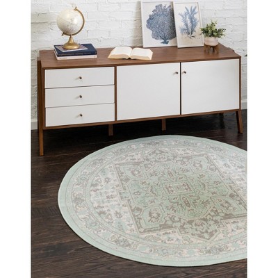 • Size in FT: 7' Round - Size in CM: 213 x 213 - Pile Height & Thickness: - Colors: Mint, Ivory, Gray, Light Blue