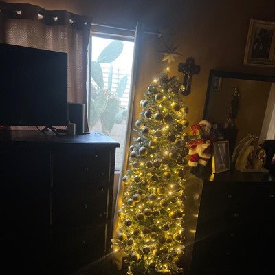Best Choice Products Pre-Lit Partially Flocked Pencil Christmas Tree w/ 2-in-1 Multicolor Lights