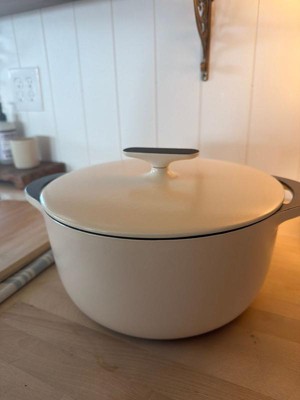 This cast iron dutch oven has received high praise for its exceptional cooking performance and aesthetic appeal. Guests appreciate its ability to cook a variety of dishes beautifully, from soups to sourdough bread, while being easy to clean and maintain. The lightweight design compared to traditional cast iron makes it a favorite among those who enjoy cooking without the hassle of heavy cookware. Overall, it is a must-have for any kitchen enthusiast.