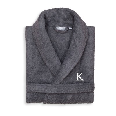 Linum Home Textiles 100% Turkish Cotton Adult Personalized Terry Bathrobe in White Bookman Font , Pink/White , Small/Medium-K