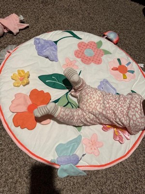 [This review was collected as part of a promotion.] This tummy time mat is beautiful!! I’m in love and my 7month old baby really enjoys it. it has a small mirror, 4D butterfly, crinkle material flower. The material is soft and durable.