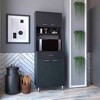 The Helis 60 Pantry Double Door Cabinet is a kitchen organization station that frees up valuable counter and cabinet space, holding your microwave, coffee maker, and other small appliances. It features a bottom cabinet for bigger items such as pots and pans, a top spice rack and cabinet, and a spacious top surface to place a big microwave or prep meals, top. Designed with elegant Black Wengue, Light Grey, White, Light Oak, Smokey Oak manufactured Wood finish.