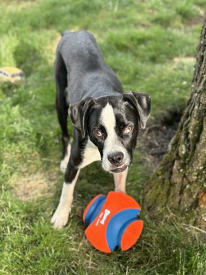 Awesome kick ball, but not if your dog is a chewer. I’m hoping Petmate designs another version of this ball in rubber. I’d definitely buy it!