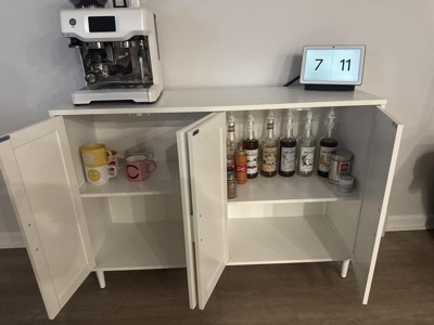 I got this for my coffee set up. I really like it and has loads of storage space and adjustable shelves. It recommends two people to set it up and move but I did it myself in one day in about two hours.