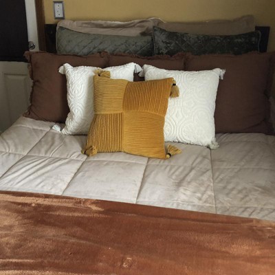 Love this comforter! So soft, so warm, feels luxurious. The only thing is that I wouldn’t consider it “gold” it’s a true nude color which I’m okay with but if you’re looking for a gold color that is not what you’re getting.