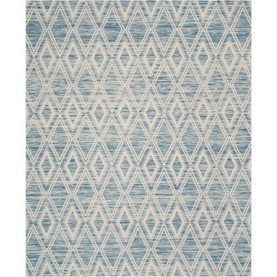 Transform your space with this exquisite area rug, skillfully hand loomed to perfection. Measuring 9 feet by 12 feet, this large rectangular masterpiece features a soothing blue and ivory hue, adding a touch of serenity and elegance to any room. Crafted from a blend of jute and cotton with a hint of latex, this rug offers an inviting texture underfoot. With a height of half an inch, it balances comfort and functionality seamlessly. Originating from India, it embraces a contemporary style that complements modern decor. The lack of pattern allows it to effortlessly blend with various design themes, making it a versatile addition to your home. Indulge in the craftsmanship and artistry that this sophisticated rug brings, creating a warm and welcoming ambiance.
