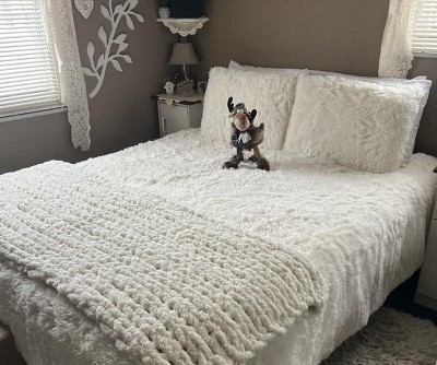 This set is so perfect for the cool months rolling in. The fluffiness of the blanket and pillowcases is unreal. The cream color will fit so many different aesthetics as well. I have washed and dried this multiple times and it stays just as fluffy as the first time I pulled it out of the bag. It hasn’t gotten matted down or tangled at all.