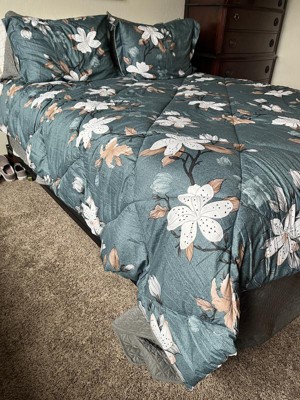 Peace Nest 7pc Floral Printed Reversible Comforter & Sheets Set, Nightshadow Blue, Full/Queen