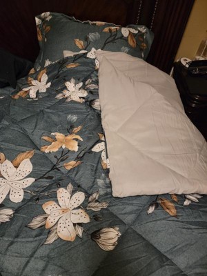 This is a beautiful set! I love the colors and floral pattern is so pretty. The fabric is so soft, the sheets have an almost silk-like sheen and feeling, the pillow shams are so comfortable and the comforter is think and fluffy. It’s reversible to a solid grey. Excellent quality! I want to stay in bed!