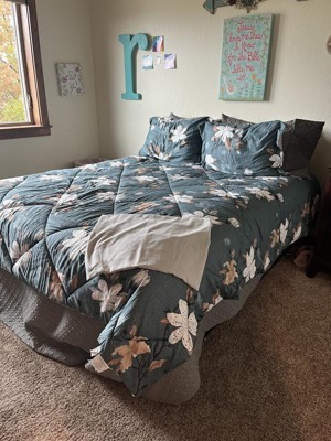 Transform your bedroom into a stylish retreat with this Bed-in-a-Bag set. The unique floral design adds a pop of color and sophistication to your space, while the ultra-soft microfiber fabric ensures a cozy and peaceful night's sleep. The high-grade microfiber filling delivers superior comfort and warmth, while its durable construction resists fading, shrinking, and seam slippage after washing. This all-in-one set includes everything you need to create a beautiful, comfortable bed, including a comforter, pillowcases, shams, fitted sheet, and flat sheet. Perfect for any bedroom refresh!