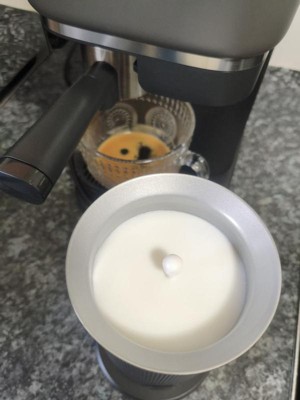 [This review was collected as part of a promotion.] User friendly and great for beginners. Mostly made from plastic which is sturdy. Compact and modern design which is slim so excellent if u have limited space available. Build in puck release button for cleaning. 16 bar pressure pump. Noise level is low. Stand alone milk frother for making lattes and cappuccinos. Overall it’s a great machine but it lacks adjustable grind settings and has limited room for larger cups and sometimes the beans spill.