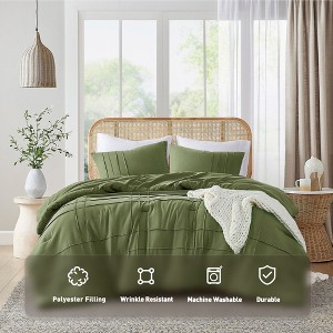 3Pcs Comforter set Pinch Pleat Comforter for All Seasons, Grid Pattern Lightweight Bedding Set, Solid Chic Vintage Style Farmhouse Bed Comforter Sets