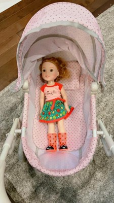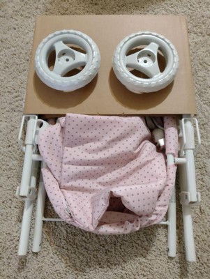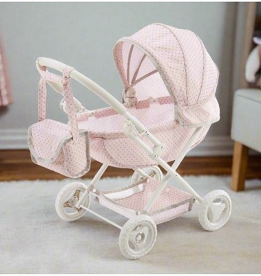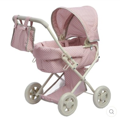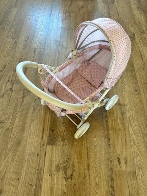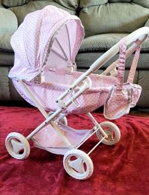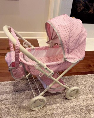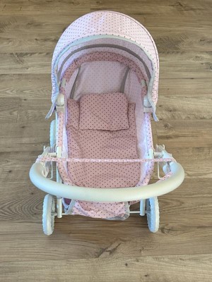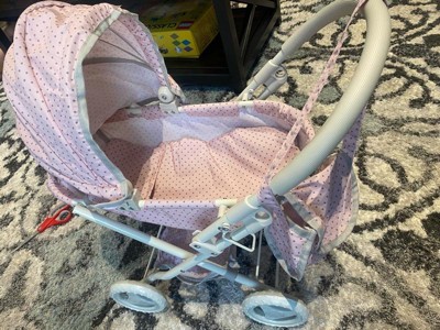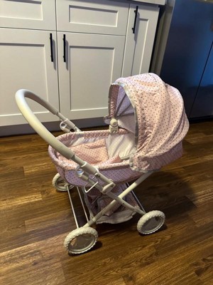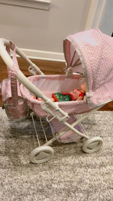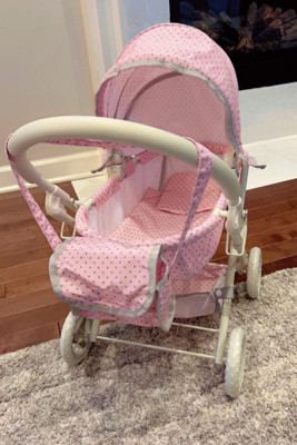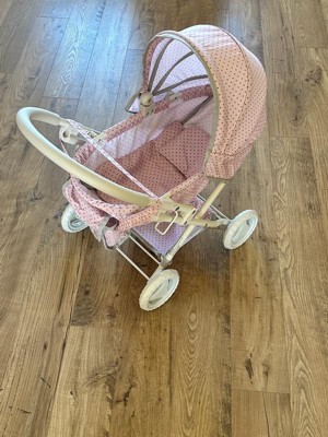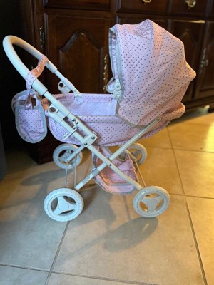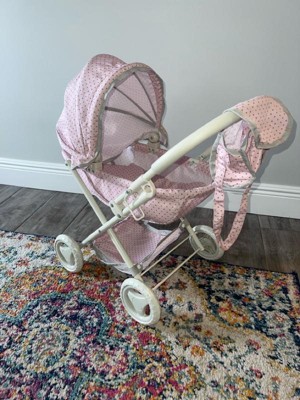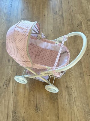 Olivia's Little World Polka Dot Princess Baby Doll Pram Stroller with Retractable Canopy & Storage, Pink