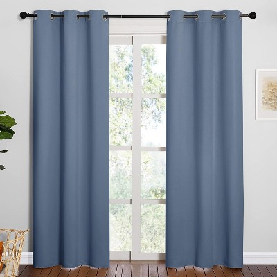 Classic Modern Solid Room Darkening Light Filtering Curtains, Grommets, Set of 2, 42"x84", Stone Blue - Blue Nile Mills