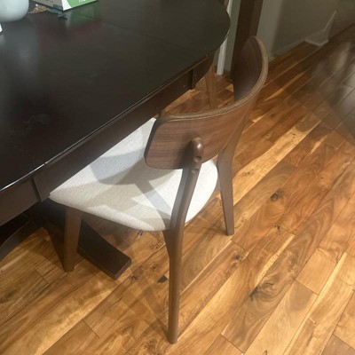 There are a couple of things that I really love about these dining chairs. The first is how easily they come together. The legs are one piece so you don’t have to worry about them being un sturdy or coming loose overtime. The back is a beautiful wood finish that gives you just enough support when you’re sitting at the table. I wish the cushion was a little bit thicker it’s not terrible, but I can see overtime that it might get worn out overall a great product made with great quality wood. I received an incentive to write this review.