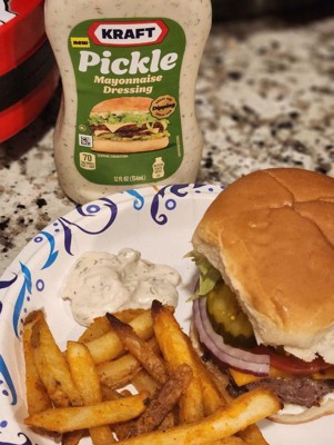 Kraft's pickle mayonnaise dressing offers a unique blend of tangy pickle flavor and creamy mayonnaise, making it a versatile condiment for various dishes. Guests appreciate its smooth texture and easy-to-use squeeze bottle, which enhances sandwiches, burgers, and salads. While pickle lovers rave about its bold taste, some guests find the flavor a bit overpowering. Overall, this dressing is a fun addition to meals, especially for those who enjoy pickles.