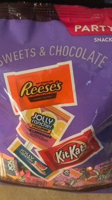 [This review was collected as part of a promotion.] This bag of candy has something for everyone. It has Reeses, KitKats, Jolly Rancher lollipops and sticks. My daughter doesn't like chocolate, but she loves the lollipops and jolly rancher sticks. There is a good mix of each item in the bag, it isn't mostly KitKats or lollipops, it is pretty even mix.