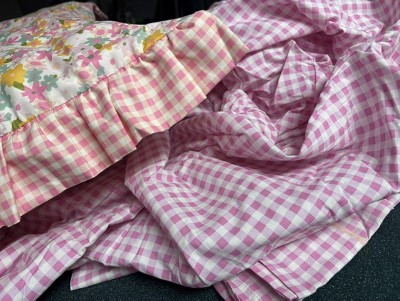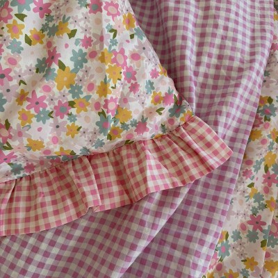 I bought this for my daughter to match the pillowfort reversible crinkle bow gingham floral comforter set. They are two different shades of pink and do not match. Very disappointed they don’t go together after all.