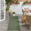 This Nourison Versatile Collection rug brings inviting style to your favorite indoor or outdoor space. With a raised diamond design in earthy tone-on-tone green that stands out beautifully against its flatwoven ground, this outdoor rug enhances your space with delightful texture and modern appeal. Machine-made from durable, easy-to-clean fibers, Versatile is great for high-traffic areas inside the home as well as all seasons spent outdoors. To care for this rug, we recommend rinsing outdoors with a hose. Air dry both sides fully; do not place into a washing machine.