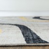 Elevate your living space with this resilient and stylish modern abstract striped rug. Perfect for high-traffic areas, it's also pet-friendly and machine washable for added convenience. This rug is remarkably easy to clean, featuring a low 0.2” looped nylon pile that traps less dirt and offers high resistance to wear. Additionally, the non-skid backing eliminates the need for a rug pad, ensuring safety on all types of floors.