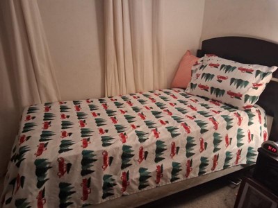 [This review was collected as part of a promotion.] The cutest design ever for my son’s room around the holidays and through the winter. The trucks are adorable and not too christmasy. The flannel is soft but not overly fluffy. I like that it doesn’t shed or cause a mess. Very good quality and super soft and cuddly.