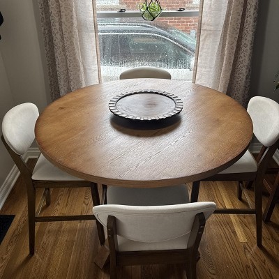Such a gorgeous and high quality table!!! I can tell it will last me a long time! The box was so heavy I could barely get it inside! It’s an incredibly solid piece of furniture and was one of the easiest things I’ve ever put together. I put it together by myself with no help and it took less than an hour. Matches my chairs (also purchased online from Target) PERFECTLY! 1000/10!