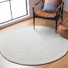 Elevate your space with this beautifully crafted area rug, measuring 7 feet by 7 feet. With a soothing palette of light grey and ivory, this round rug brings a contemporary touch to any room. The hand-tufted weave technique, originating from India, combines wool and cotton with latex to offer a soft yet durable surface. At just a quarter-inch height, it creates a sleek profile that fits seamlessly into your decor. Its geometric pattern adds a sophisticated edge, making it an ideal centerpiece or accent. This rug is designed to complement modern interiors, offering both style and comfort. Transform your living space with this elegant addition.