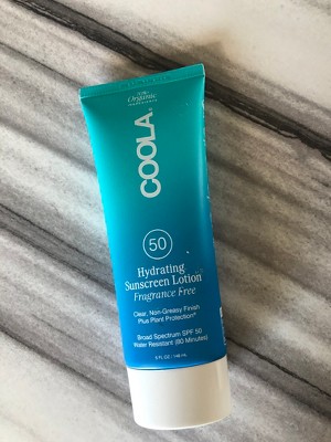 The Coola sunscreen is a hydrating sunscreen lotion that is fragrance free so it does not cause skin irritation. I like that the lotion is clear and non greasy. It doesn't leave a white cast on the skin. It protects against sun exposure and has broad spectrum SPF 50. It is also water resistant up to 80 minutes which is wonderful if you have small children. This sunscreen is organic and vegan which is better for the skin. It is so lightweight that it feels like a moisturizer on the skin. It goes on clear and has no scent. It contains 70% organic ingredients which is better than most sunscreens on the market. I love that it leaves my skin feel soft smooth and hydrated. I like that it leaves a non greasy finish to the skin so you can't even tell it's on. **This review was collected as part of a promotion.