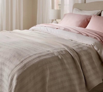 Because this coverlet has polyester in it, it just is not soft like other Parachute blankets. Parachute is known for natural fabrics- most always cotton and/or linen and this just doesn't compare to the buttery soft bedding that this line usually provides. Had to return it.