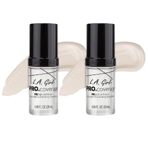 LA Girl Pro Coverage HD Long Wear Illuminating Foundation (WHITE GLM641) L.A. Paraben-Free | Light Weight Formula (PACK OF 2)