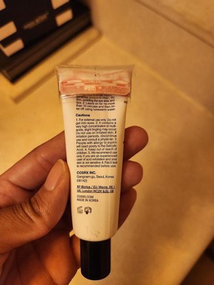 I could tell that the product I received had been returned and resold which I'm okay with in this case since there's not a dropper with this container ( a lot of people drag those across their face) but a little under half of the container was gone… I did get it with a few dollars off on sale but oh my gosh. I would hate to reorder full price and get the same thing… the product itself is actually pretty gentle even with the higher level of acids. I didn't start off with 10 mins kinda worked my way up starting with 3 mins and only a little product to see how my skin would react. No irritation so far! I would probably order directly from cosrx from now on though and no more dropper things from here 😅