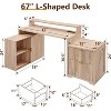 Boasting a spacious footprint with dimensions of 33.5" deep, 67" wide, and standing at a comfortable height of 36.5", this L-shaped Desk offers ample room for all your work essentials and more. Its clever design includes a Cabinet with Sliding Door & Adjustable Shelves, providing easy access to your documents and office supplies while allowing you to customize the storage space to your needs. Whether you're storing files, binders, or art supplies, this cabinet offers versatile and flexible storage solutions.
