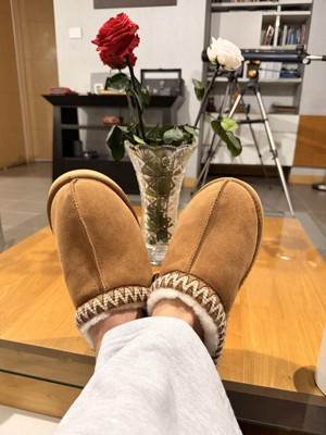 I’ve owned a lot of slippers over the years, but these immediately stood out. The shearling is incredibly soft and naturally temperature regulating, so my feet stay warm without overheating — which is hard to find. The genuine suede gives them a beautiful, elevated look, and I love that I can wear them both inside and outside without sacrificing comfort. They feel supportive, well-made, and truly designed for everyday living. If you’re looking for a slipper that blends coziness with quality, these are absolutely worth it