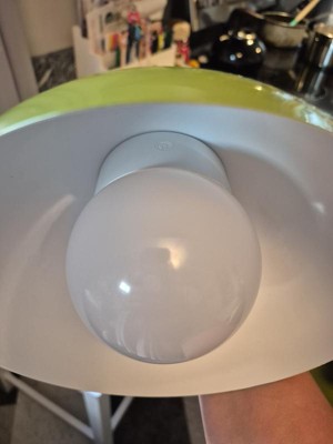 I was a bit confused about this item when purchasing online. The bulb is removable and charged with a USB cable. The instructions say the charge lasts for about 15 hours of light. The bulb comes in and out pretty easily but would require charging every few days. I really like the color, but it’s less vibrant than it appears online and is more of a 70s avocado color (the difference is sort of apparent in the photo comparing the item to the box)