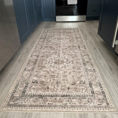 [This review was collected as part of a promotion.] This rug is beautiful. The size is perfect as my kitchen runner and the colors are neutral therefore, it matches with everything. It stays in place and no issues tripping over or the rug moving. Love the quality and the quick delivery.