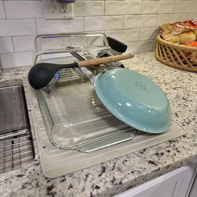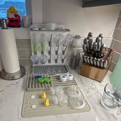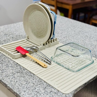 Love this dish mat! I was tired of my bulky dish drain, so picked this up and it is so great. Love the plate rack and the fact that it folds up. Looks much better on my counter than my old large dish drain.
