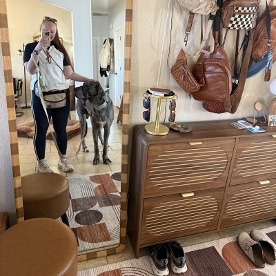 Snagged this adorable mirror on sale for less than $100. It’s HUGE and I’m in love. I saw that my local store had them in stock, so I did a pick up order. When they brought it out to my car, I could literally hear broken glass shifting around in the box. I opened it to confirm, and they replaced it immediately with one that was out of the box so we could fully inspect it before I left the store. They were really good about it, but these mirrors are clearly not packaged well since multiple reviews have stated they are broken in the box. Be sure to inspect yours in person at the store if you’re buying, otherwise the odds of receiving a shattered mirror are probably high. It is SO cute and high quality, though!