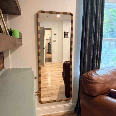 Enhance your home decor with this Striped Floor Mirror from Threshold™. This leaning floor mirror features a wooden frame with striped design that makes it an eye-catching focal point on any room. Designed in a rectangular shape, this striped mirror reflects beauty in any sense, making it the perfect statement piece for bedrooms, hallways, living rooms, or dressing areas.