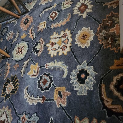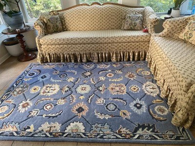 Love the blue color... This rug is much more beautiful in person its so soft and plush 100% wool got on sale.