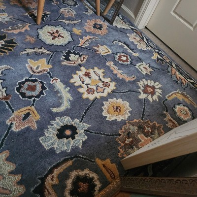 Bring textural flair to your indoor setting with this Handtufted Persian Area Rug from Threshold™. This rectangular handtufted area rug showcases a Persian pattern on a blue backdrop for a timeless look that blends well with any decor aesthetic. Featuring a hooked wool construction for soft underfoot comfort, the medium-pile are rug is ideal for use in a variety of areas within your home.