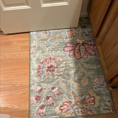 Elevate your living space with the chic and functional Comfort Mat Floral Accent Rug from Threshold™. This rectangular accent rug showcases a floral pattern on a sage green backdrop for a charming look that blends well with any decor aesthetic. Featuring a woven polyester construction for soft comfort underfoot, the accent rug also has a low-pile construction, making it perfect for high-traffic areas like your living room or entryway.